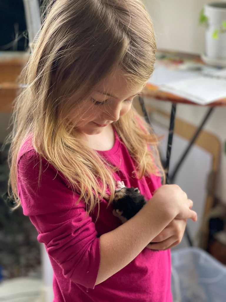 Instantly smitten, of course. The kids named her Cookie Dough. She’s been a fairly uneventful little guest, eating regularly and not causing any problems! She purrs a lot, and at 3.5 weeks has already started using the mini litter box on the end of her tub. We just started offering soft food, so hopefully in another week I won’t have to wake up for night feedings anymore!