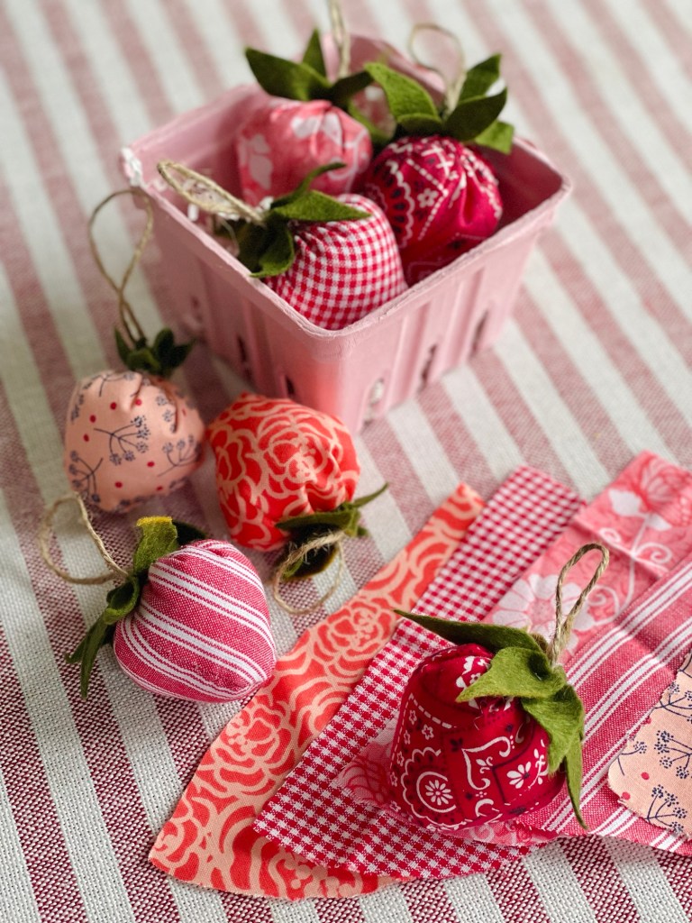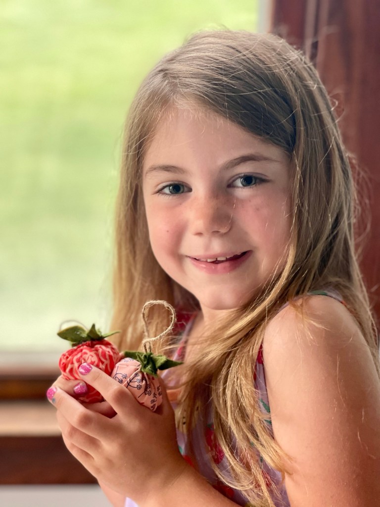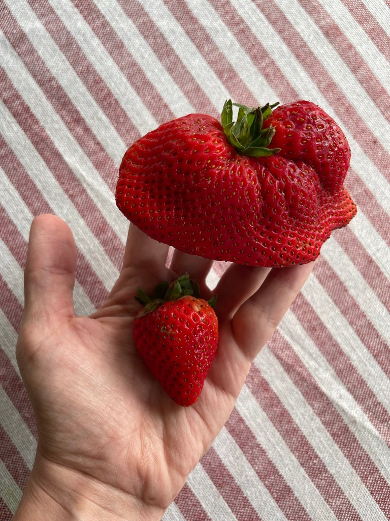 It’s pretty flexible! You could use green ribbon or yarn for the stems. What I particularly love about this project is that strawberries aren’t perfect shapes, so these don’t have to be either! Point in case- check out THIS strawberry we just found in our latest grocery store purchase: