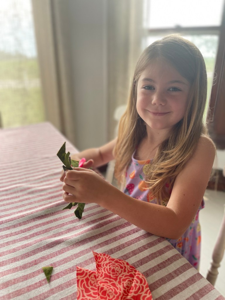 Pull it tight and tie it shut. Cut your leaves if you haven’t already. It seems to work best with 6-8 leaves. They don’t need to be perfect, and look best when they’re long with a wider bottom and pointy tips!