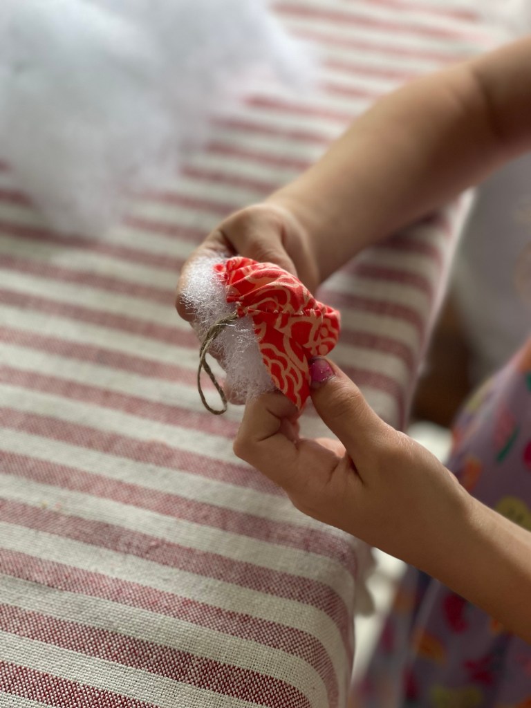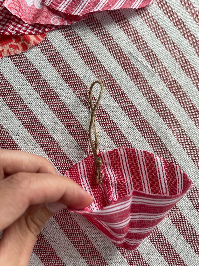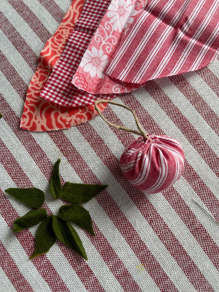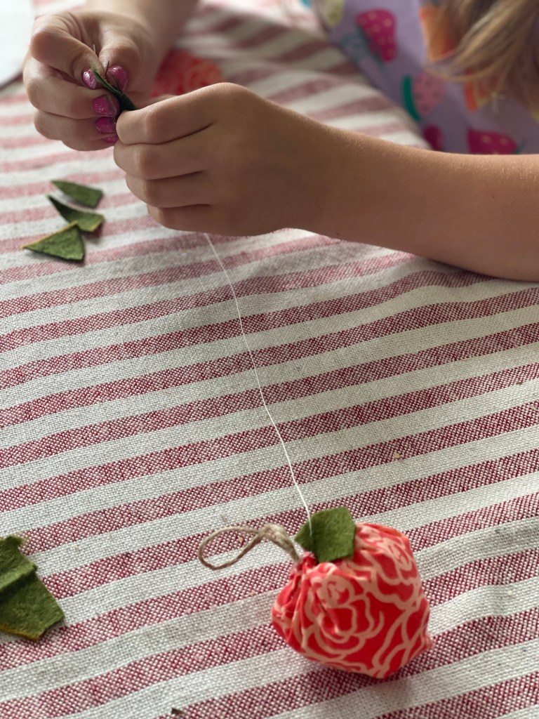 Voila! Stitch them into place tightly and tie it securely, and we have an adorable handmade strawberry!