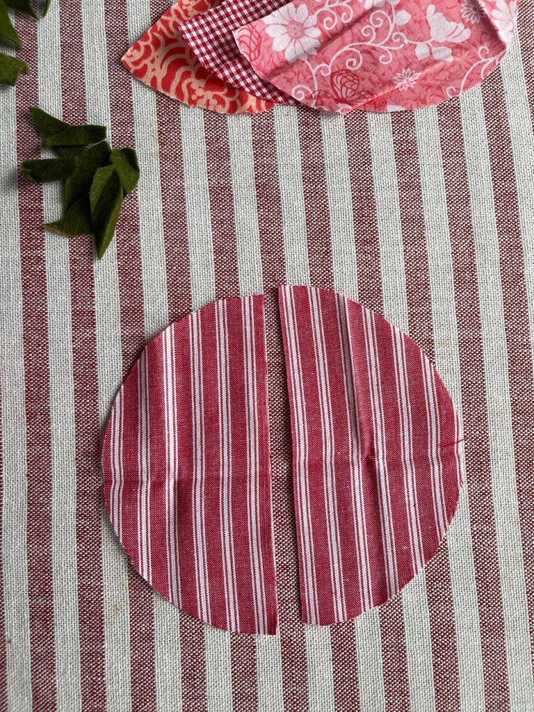 Take your circle and cut it in half. (Use the other half to make a second strawberry! ❤️)